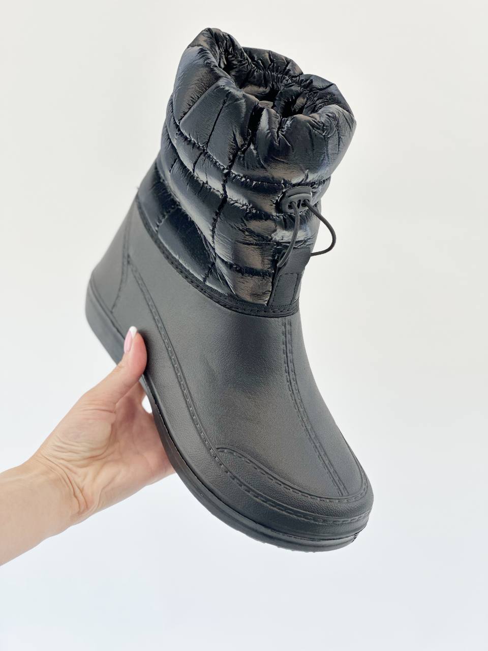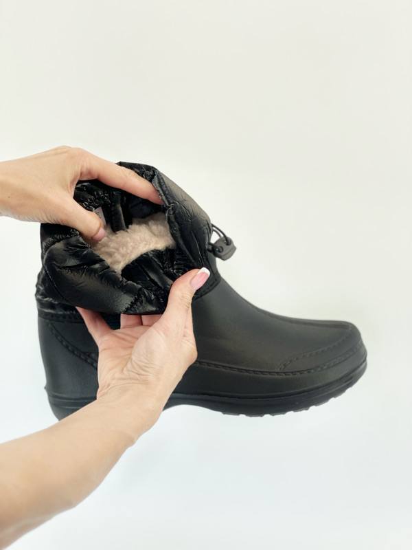 Універсальний варіант – від холоду і сльоти Похмура осінь … Мокра весна … Сніжна зима … У черевиках занадто сиро, а в гумових чоботах ноги просто мерзнуть. Вам знову не в чому ходити? Не турбуйтеся: якраз для такої примхливої погоди і придумані демісезонні жіночі комбіновані чоботи – “Тайга”! Чому їх варто полюбити? · По-перше, верх чобота з щільного текстилю – не тільки оберігає ноги від холоду, але і відмінно виглядає в поєднанні з зимовим одягом. · По-друге, нижня частина, яка закриває стопу, зроблена литним методом- з дуже легкого, пружного і водонепроникного сучасного матеріалу ЕВА – і щільно пришита до верхньої частини чобота. · А за додаткову м’якість і тепло відповідає підкладка зі штучного хутра. · Жіночі чоботи “Тайга” – взуття для тих, хто любить тримати ноги в теплі і сухості!
